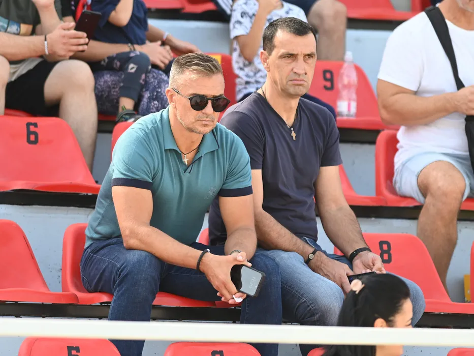 Daniel Pancu si Bogdan Arges Vintila urmaresc din tribuna meciul de fotbal dintre CS Tunari si AFK Csikszereda Miercurea Ciuc, contand pentru Liga a-2-a Casa Pariurilor, desafsurat pe Stadionul din Tunari, sambata 23 septembrie 2023. © FOTO:Razvan Pasarica/SPORT PICTURES
