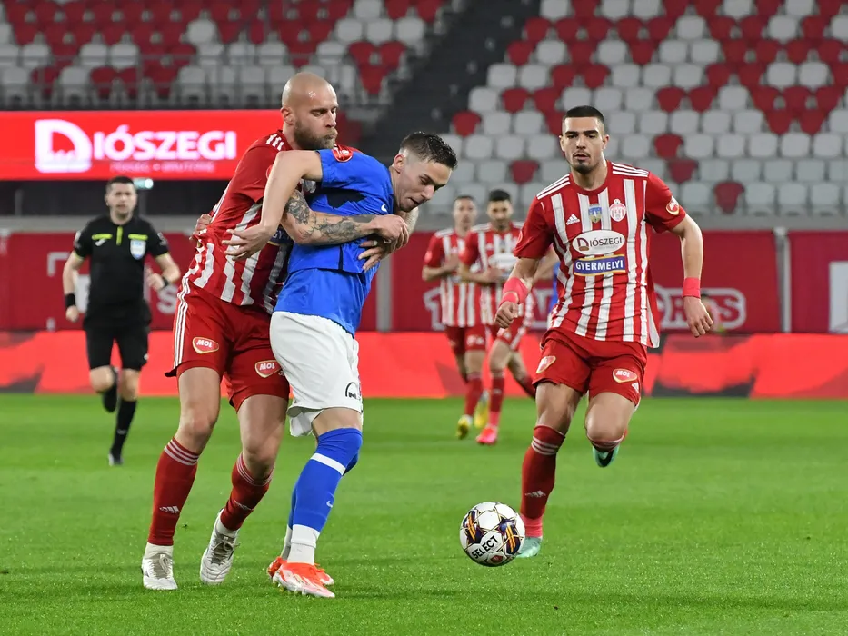 Branislav Ninaj, Louis Munteanu si Denis Ciobotariu in meciul de fotbal dintre Sepsi OSK Sfantu Gheorghe si Farul Constanta, contand pentru Play off-ul Superligii Superbet, desfasurat pe Sepsi Arena din Sfantu Gheorghe, vineri 5 aprilie 2024. © FOTO:Bogdan Balas/SPORT PICTURES