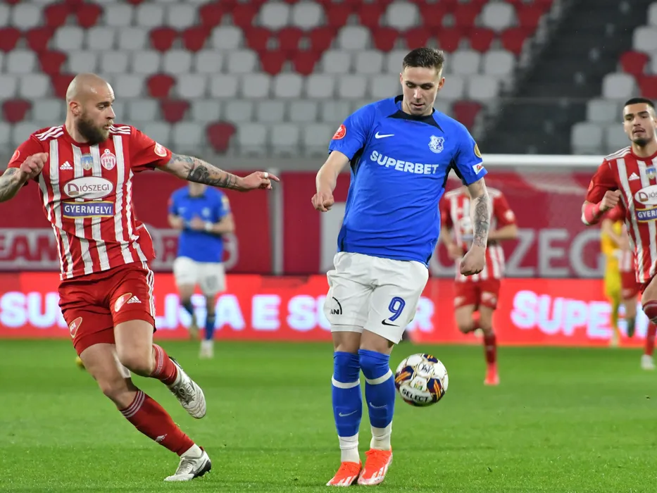 Branislav Ninaj si Louis Munteanu in meciul de fotbal dintre Sepsi OSK Sfantu Gheorghe si Farul Constanta, contand pentru Play off-ul Superligii Superbet, desfasurat pe Sepsi Arena din Sfantu Gheorghe, vineri 5 aprilie 2024. © FOTO:Bogdan Balas/SPORT PICTURES