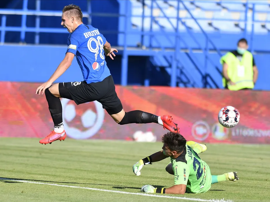 Louis Munteanu si Marian Mihai Aioani in meciul de fotbal dintre FC Viitorul si Chindia Targoviste, contand pentru play-out-ul Ligii 1 Casa Pariurilor, disputat fara spectatori pe Arena centrala a Academiei Gheorghe Hagi din Ovidiu, sambata 25 iulie 2020. © FOTO:Razvan Pasarica/SPORT PICTURES