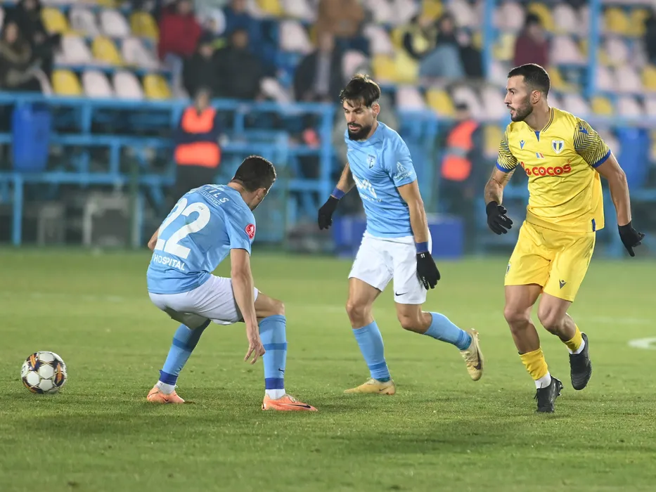 Vadim Rata, Daniel Constantin Florea si Nogueira Junior Jefferson in meciul de fotbal dintre FC Voluntari si Petrolul Ploiesti, din cadrul Superligii Superbet, desfasurat pe Stadionul Anghel Iordanescu din Voluntari, vineri 1 decembrie 2023. © FOTO:Razvan Pasarica/SPORT PICTURES