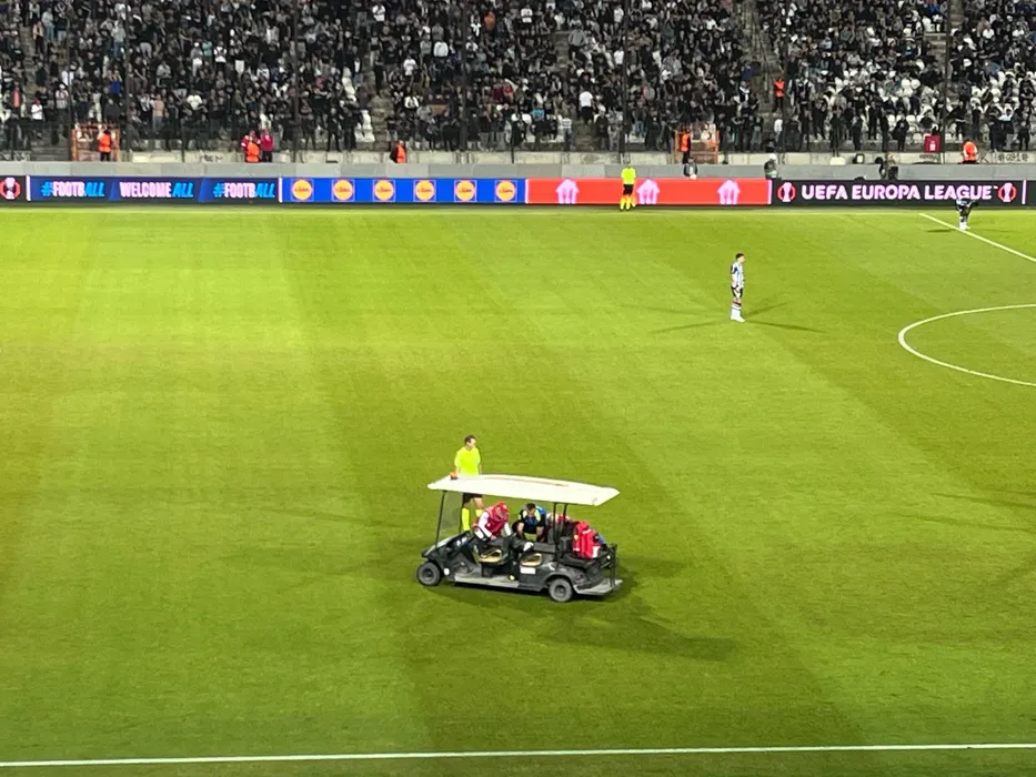 Lovitură cruntă primită de Gigi Becali în PAOK – FCSB! Schimonosit de durere, fotbalistul a părăsit terenul în mașinuța medicală