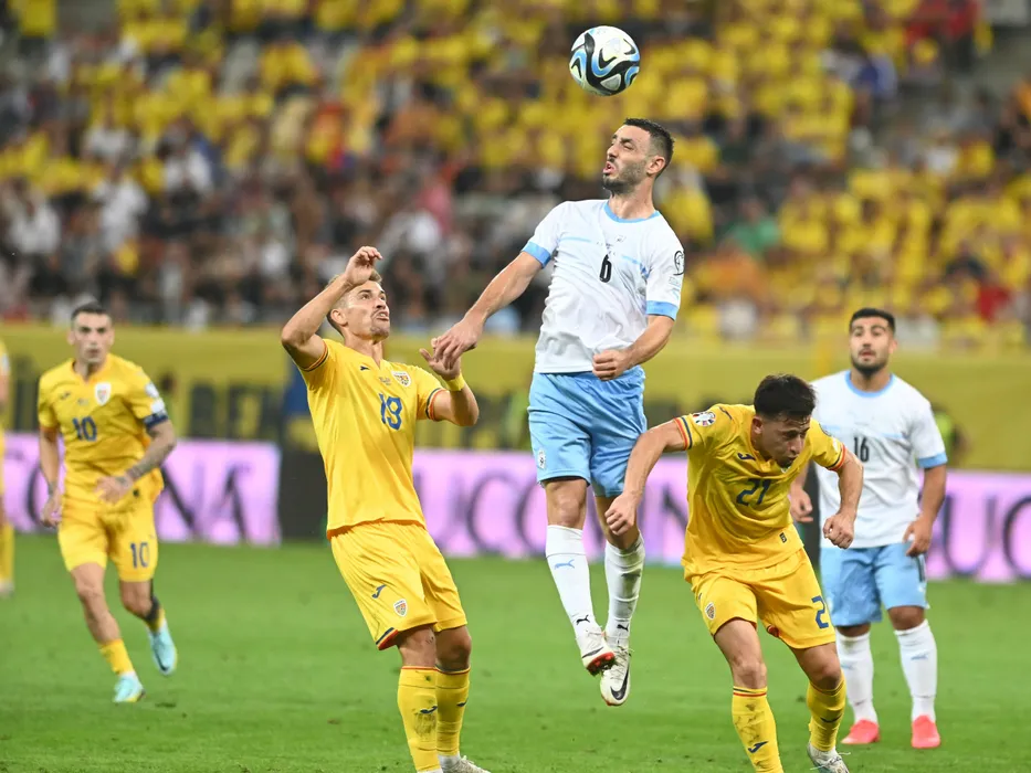Valentin Mihaila, Neta Lavi si Olimpiu Morutan in meciul de fotbal dintre Romania si Israel, din cadrul preliminariilor Campionatului European 2024, desfasurat pe Arena Nationala, sambata 9 septembrie 2023. © FOTO:Razvan Pasarica/SPORT PICTURES