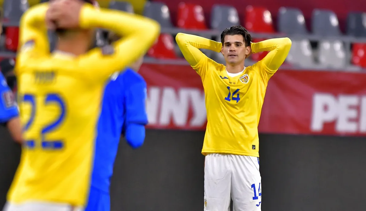 Ianis Hagi isi pune mainile in cap dupa o ratare in meciul de fotbal dintre Romania si Islanda, din cadrul Preliminariilor Campionatului Mondial 2022, desfasurat pe Stadionul Steaua din Bucuresti, joi 11 noiembrie 2021. © FOTO:Razvan Pasarica/SPORT PICTURES