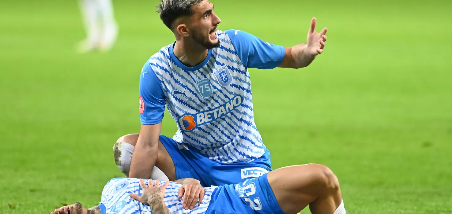 Andrei Virgil Ivan alaturi de Ionut Alexandru Mitrita la pamant dupa o accidentare avuta in meciul de fotbal dintre Universitatea Craiova si Dinamo Bucuresti, contand pentru Superliga Superbet, desfasurat pe Stadionul Ion Oblemenco din Craiova, duminica 12 noiembrie 2023. © FOTO:Razvan Pasarica/SPORT PICTURES