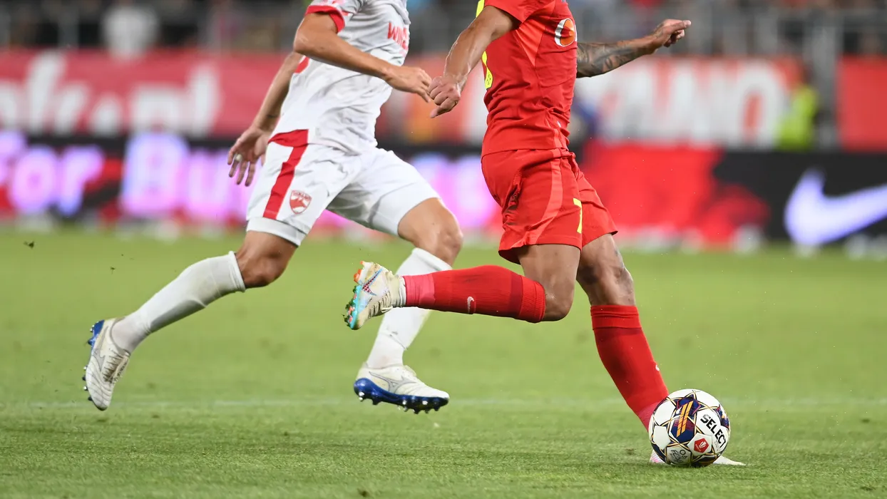 Nelut Stelian Rosu si Florinel Teodor Coman in meciul de fotbal dintre FCSB si Dinamo Bucuresti, din cadrul Superligii Superbet, desfasurat pe Stadionul National Arcul de Triumf din Bucuresti, sambata 22 iulie 2023. © FOTO:Razvan Pasarica/SPORT PICTURES