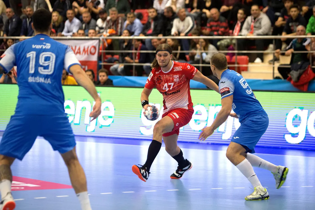 Formatia Dinamo Bucuresti (echipament rosu) joaca impotriva vicecampioanei Poloniei la handbal masculin, Wisla Plock, pentru calificarea in optimile de finala ale Ligii Campionilor, miercuri 30 octombrie 2019, in Bucuresti. ALEXANDRA PANDREA / MEDIAFAX FOTO