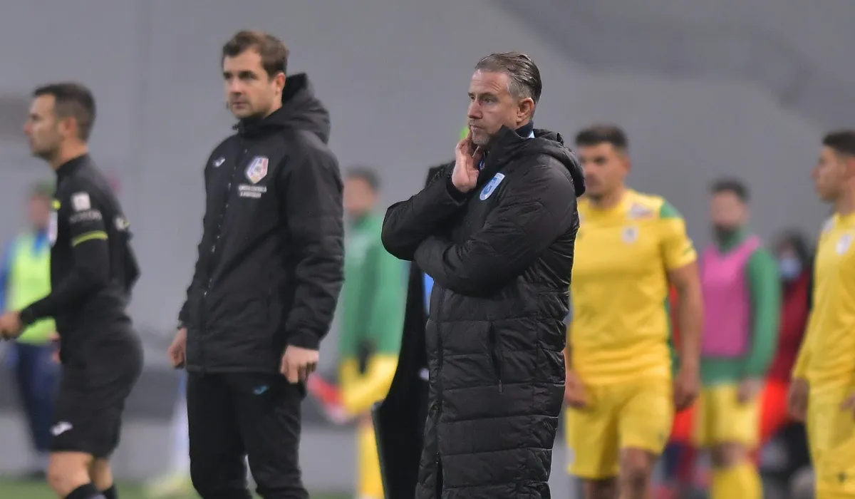 Laurentiu Aurelian Reghecampf reactioneaza in meciul de fotbal dintre Universitatea Craiova si CS Mioveni, contand pentru Liga 1 Casa Pariurilor, desfasurat pe Stadionul Ion Oblemenco din Craiova, sambata 30 octombrie 2021. © FOTO:Razvan Pasarica/SPORT PICTURES