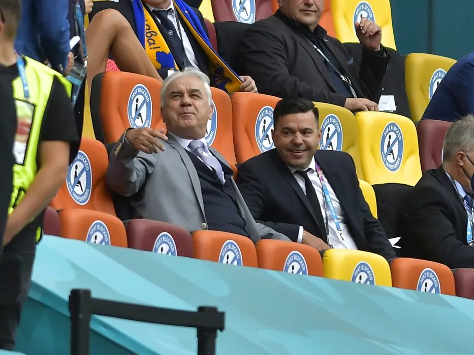 Anghel Iordanescu si Cosmin Contra in tribuna la meciul de fotbal dintre Ucraina si Macedonia de Nord, din cadrul EURO 2020, desfasurat pe Arena Nationala din Bucuresti, joi 17 iunie 2021. © FOTO:Razvan Pasarica/SPORT PICTURES