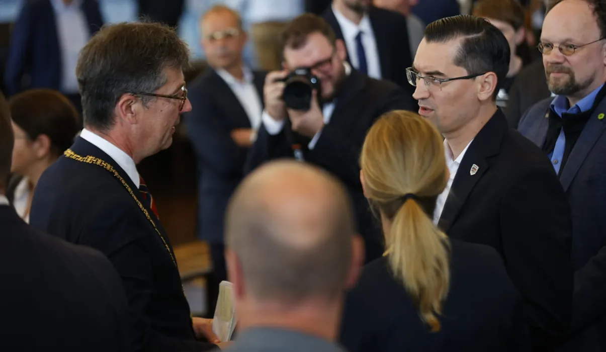 Primarul din Wurzburg şi preşedintele FRF, Răzvan Burleanu, semnează în Cartea de Aur. România a agitat oraşul bavarez