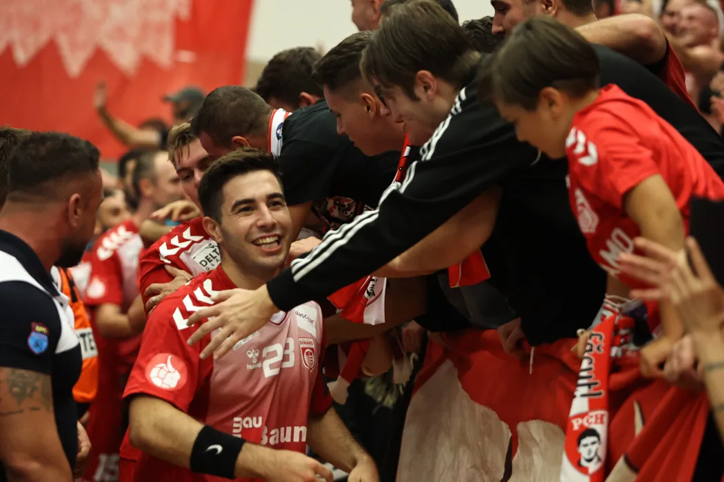Echipele Dinamo Bucuresti (echipament rosu) si Lomza Vive Kielce (Polonia) s-au intalnit intr-o partida contend pentru turneul Ligii Campionilor la handbal masculin EHF, joi, 16 septembrie 2021, in Bucuresti. GEORGE FLUSTER / MEDIAFAX FOTO