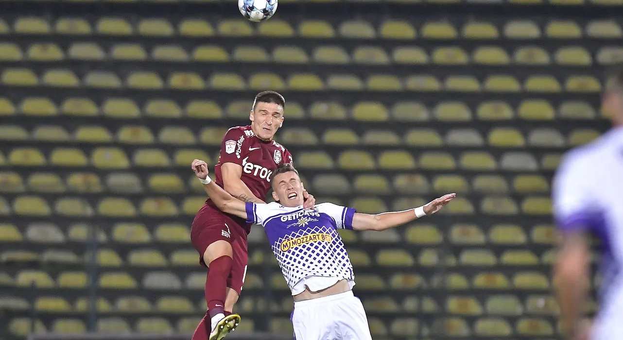 Daniel Graovac si Mihai Alexandru Isfan in meciul de fotbal dintre FC Arges si CFR Cluj, contand pentru Liga 1 Casa Pariurilor, desfasurat pe Stadionul Nicolae Dobrin din Pitesti, sambata 21 august 2021. © FOTO:Razvan Pasarica/SPORT PICTURES