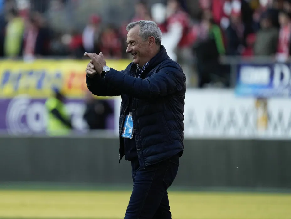 Mircea Rednic bucuros după meciul de fotbal dintre UTA Arad si SC Oțelul Galați, contând pentru Superliga Superbet Play-Out, desfășurat pe Arena Francisc Neuman din Arad, joi 25 aprilie 2024. © FOTO: Alexandra FECHETE/SPORT PICTURES