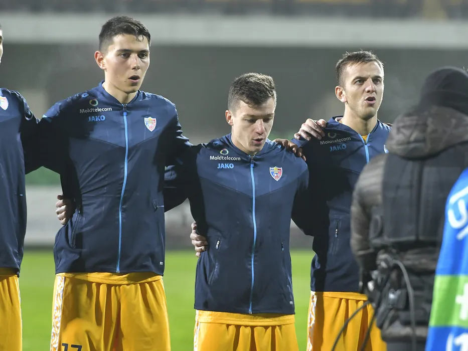 Fotbalistii moldoveni Daniel Dumbravanu, Vadim Rata si Sergiu Platica in meciul amical de fotbal dintre Moldova si Romania, desfasurat pe Stadionul Zimbru din Chisinau, duminica 20 noiembrie 2022. © FOTO:Razvan Pasarica/SPORT PICTURES