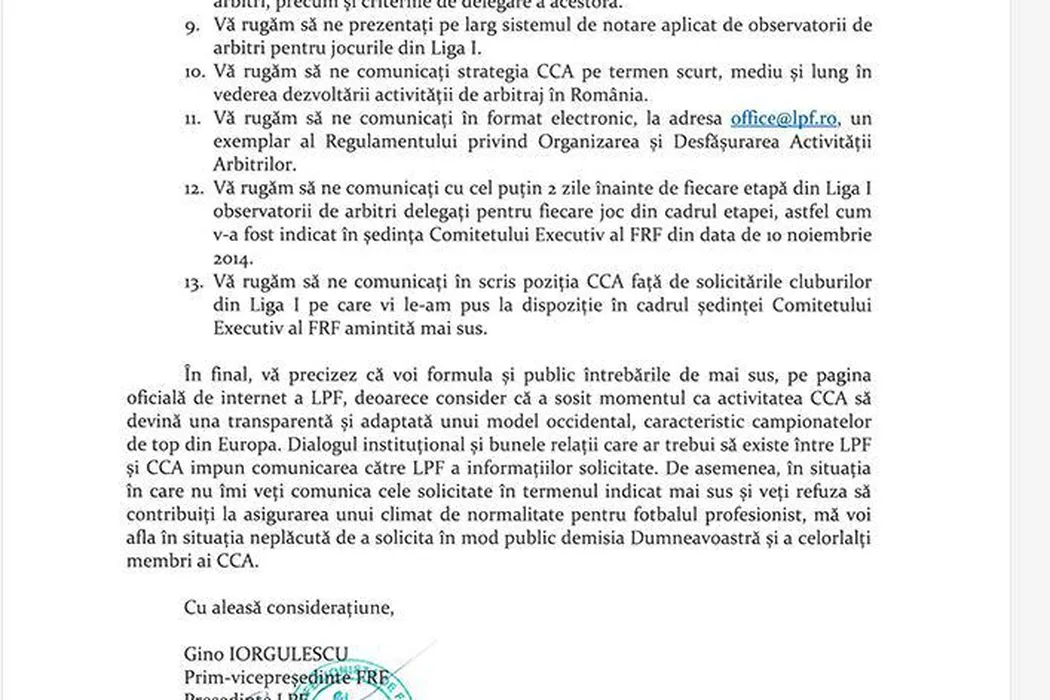 LPF a publicat ultimatumul pentru Vassaras. Grecul e somat fie să răspundă rapid, fie să demisioneze, împreună cu toți membrii din conducerea arbitrajului