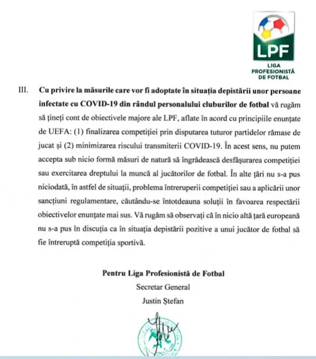 LPF iese la atac! Nu este de acord ca partidele din Liga 1 să se desfășoare fără spectatori și are o cerere specială la MTS. Avem documentul oficial! EXCLUSIV