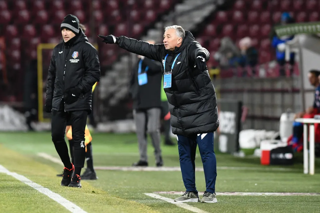 Dan Petrescu, antrenorul echipei CFR Cluj, urmareste meciul de fotbal contra formatiei UTA Arad din etapa a XXV- a a Ligii 1, disputat pe stadionul Dr. Constantin Radulescu din Cluj-Napoca, marti, 8 februarie 2022. FLAVIU BUBOI / MEDIAFAX FOTO