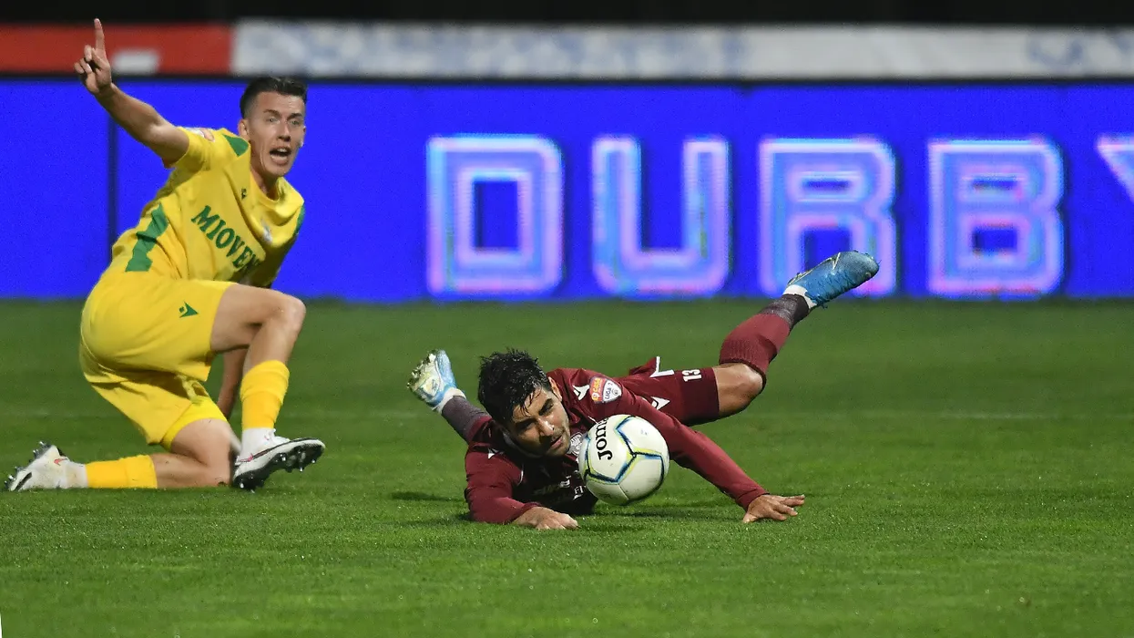 Mihai Alexandru Isfan si Lucian Petre Goge in meciul de fotbal dintre Rapid Bucuresti si CS Mioveni, contand pentru Liga a-2-a Casa Pariurilor, desfasurat fara spectatori pe Terenul central al Centrului National de Fotbal de la Buftea, joi 29 octombrie 2020. © FOTO:Razvan Pasarica/SPORT PICTURES