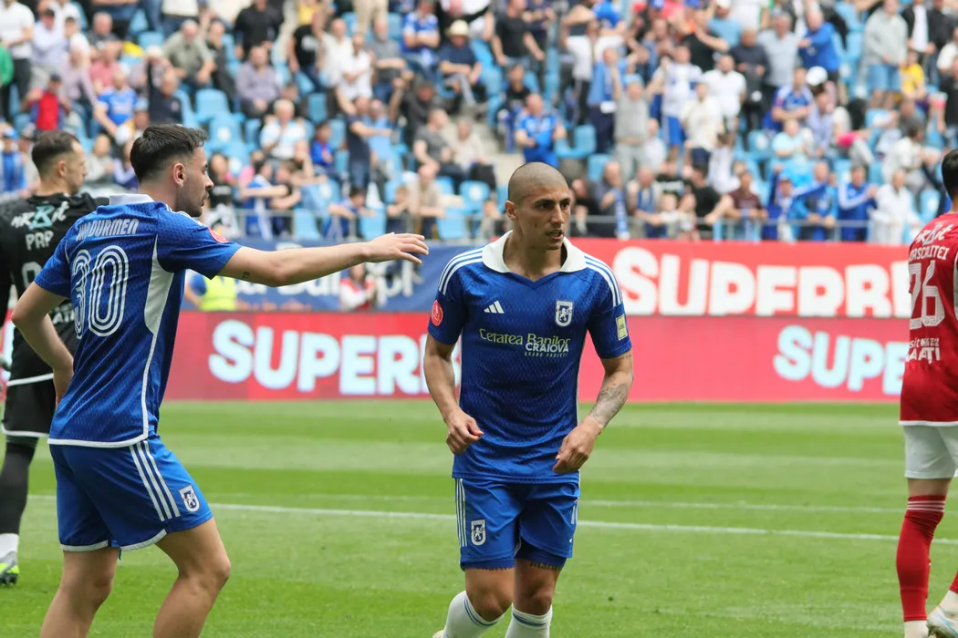 Juan Francisco Bauza după un gol marcat în meciul de fotbal dintre FCU 1948 Craiova și SC Oțelul Galați, contând pentru Superliga Superbet Play-Out, desfășurat pe Stadionul Ion Oblemenco din Craiova, duminică 31 martie 2024. © FOTO: Cătălin CIUPUREANU/SPORT PICTURES