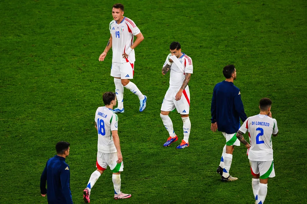 GELSENKIRCHEN - Disappointment among the Italian players after losing 0-1 during the UEFA EURO 2024 group B match between Spain and Italy at the Arena AufSchalke on June 20, 2024 in Gelsenkirchen, Germany.
