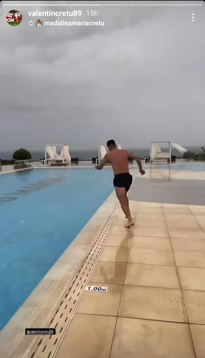 Lui Valentin Crețu nu-i pasă de nimic. Vacanță de „boier”: a făcut tumbe în piscina proprie, deși erau nori și ploua