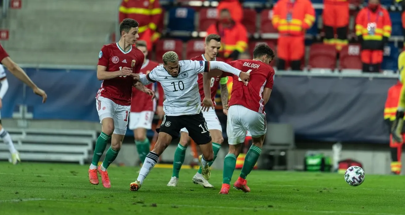 Szekesfehervar, Hungary. 24th, March 2021. Lukas Nmecha (10) of Germany and Botond Balogh (4) of Hungary seen during the UEFA EURO U-21 match between Hungary and Germany at Sostoi Stadion in Szekesfehervar.,,Image: 600882443, License: Rights-managed, Restrictions: Supplied by AVALON.RED - Fee Payable Upon Reproduction - For queries contact Avalon -
