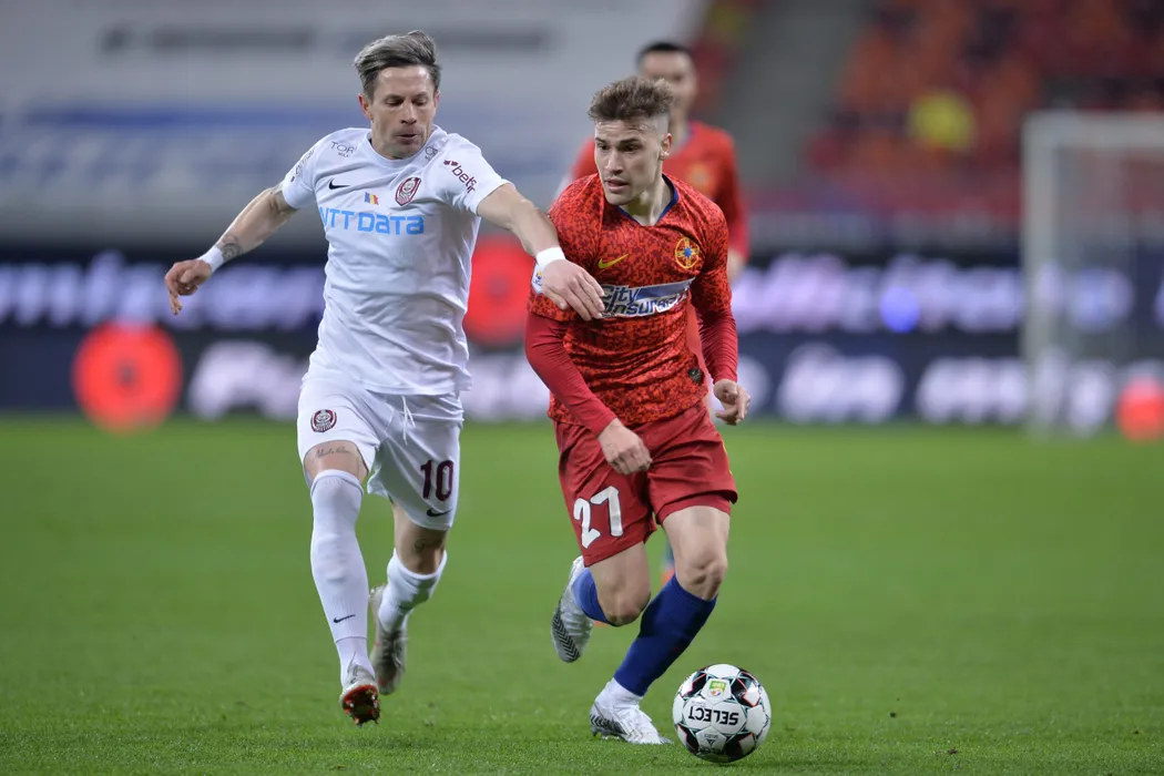 Echipele FCSB (echipament rosu) si CFR Cluj s-au intalnit intr-o partida disputata in etapa 28 din Liga 1 la fotbal, vineri 19 martie 2021, pe Arena Nationala din Bucuresti. ALEXANDRU DOBRE / MEDIAFAX FOTO