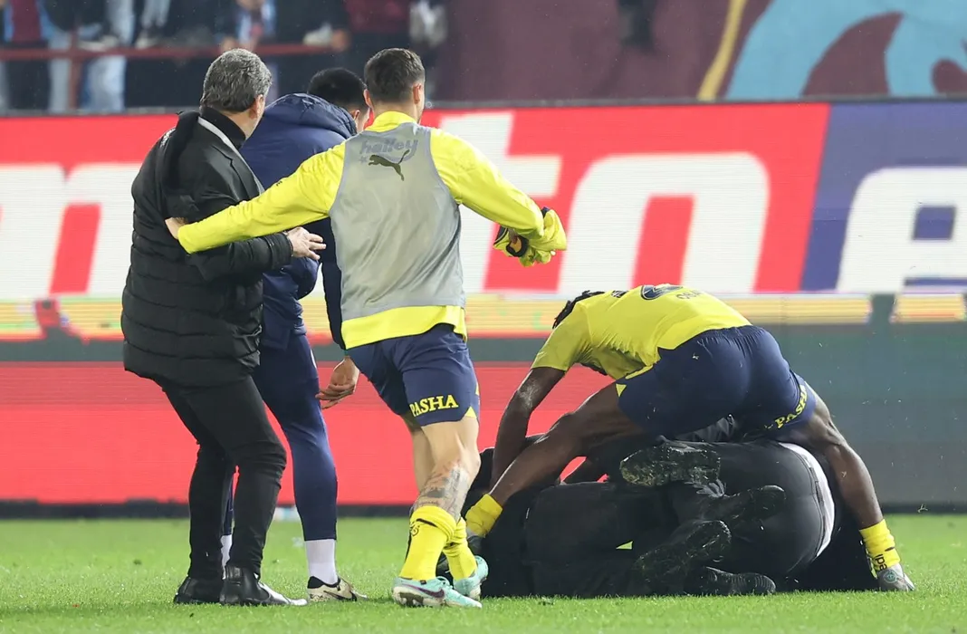 Măcel între fanii lui Trabzonspor și fotbaliștii lui Fenerbahce, pe gazon! Imagini halucinante cu bătaia dintre sute de fani ai gazdelor și jucătorii rivalei: de la ce a pornit infernul din Turcia