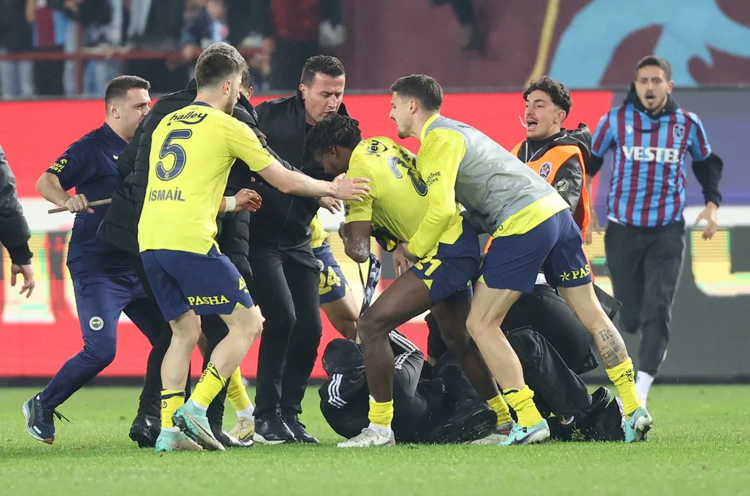 Măcel între fanii lui Trabzonspor și fotbaliștii lui Fenerbahce, pe gazon! Imagini halucinante cu bătaia dintre sute de fani ai gazdelor și jucătorii rivalei: de la ce a pornit infernul din Turcia