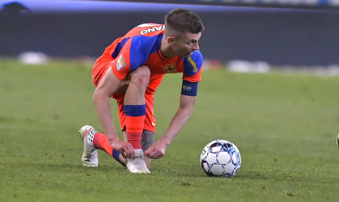 Florin Lucian Tanase se leaga la siret in meciul de fotbal dintre Universitatea Craiova si FCSB, contand pentru Play-off-ul Ligii 1 Casa Pariurilor, desfasurat pe Stadionul Ion Oblemenco din Craiova, duminica 8 mai 2022. © FOTO:Razvan Pasarica/SPORT PICTURES