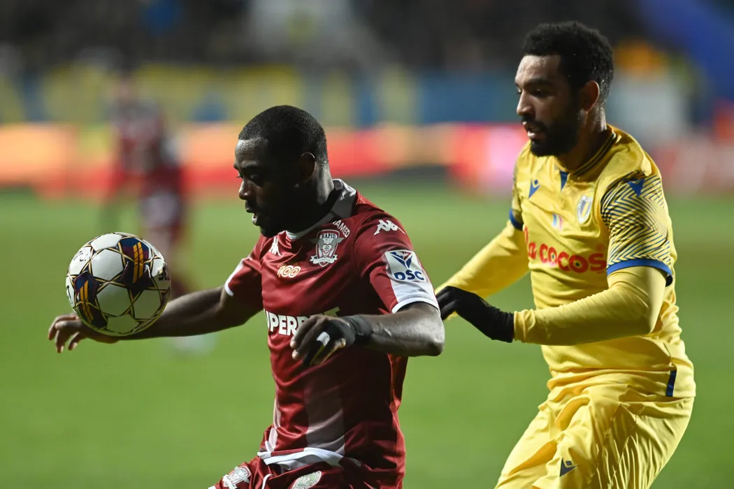Christopher Braun si Abdel Slem Billel Omrani in meciul de fotbal dintre Petrolul Ploiesti si Rapid Bucuresti, din cadrul Superligii Superbet, desfasurat pe Stadionul Ilie Oana din Ploiesti, vineri 15 decembrie 2023. © FOTO:Razvan Pasarica/SPORT PICTURES