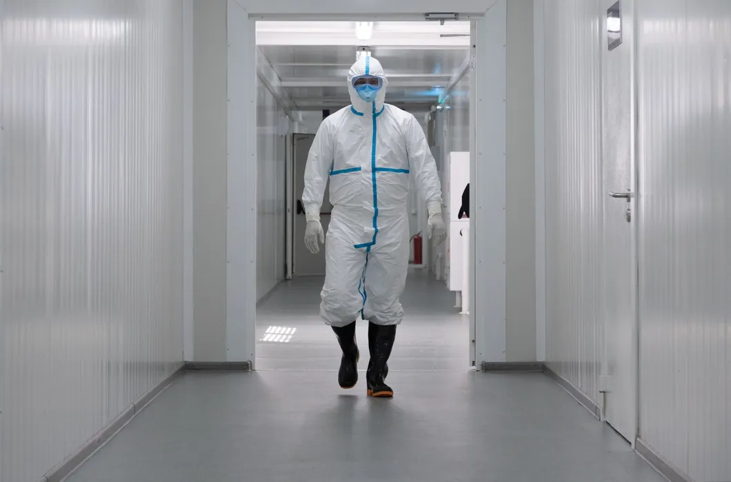 6273398 25.06.2020 A medical worker wearing a personal protective equipment (PPE) walks at the Clinical Infectious Hospital named after I.Zhekenova where patients suffering from the coronavirus disease are treated, in Almaty, Kazakhstan. Timur Batyrshin / Sputnik