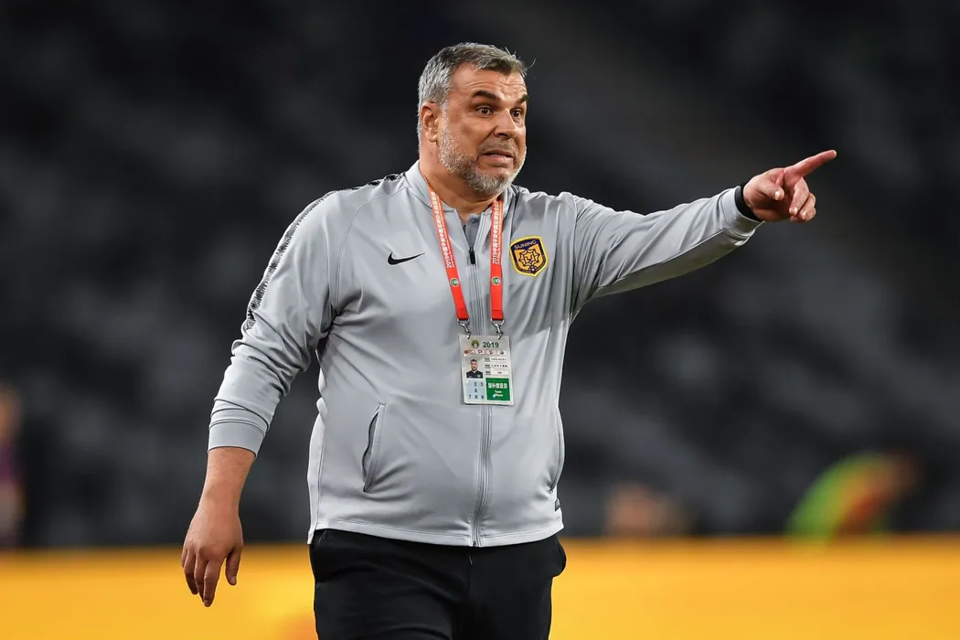 Head coach Cosmin Olaroiu of Jiangsus Suning F.C. reacts as he watches his players competing against Shenzhen F.C. in their 5th round match during the 2019 Chinese Football Association Super League (CSL) in Shenzhen city, south China's Guangdong province, 13 April 2019. Jiangsu Suning defeated Shenzhen F.C. 2-0. *** Local Caption ***