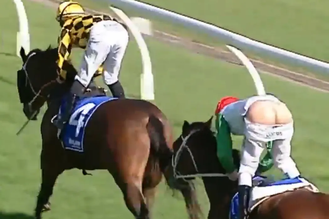 Mai jenant nu se poate! VIDEO NECENZURAT | Ce a pățit un jocheu pe ultima sută de metri! Încerca să câștige cursa, dar a reușit să devină vedetă mondială