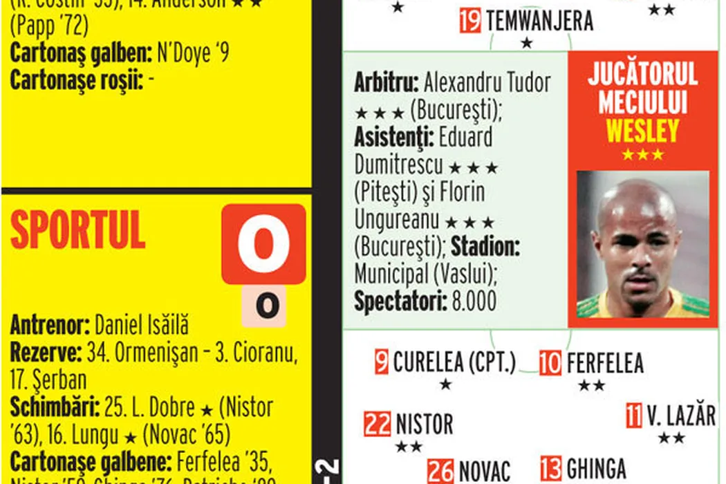 Mai poți, Wesley?** Vaslui-Sportul 1-0: Vaslui e lider! VIDEO REZUMAT: preluare și gol de geniu al brazilianului