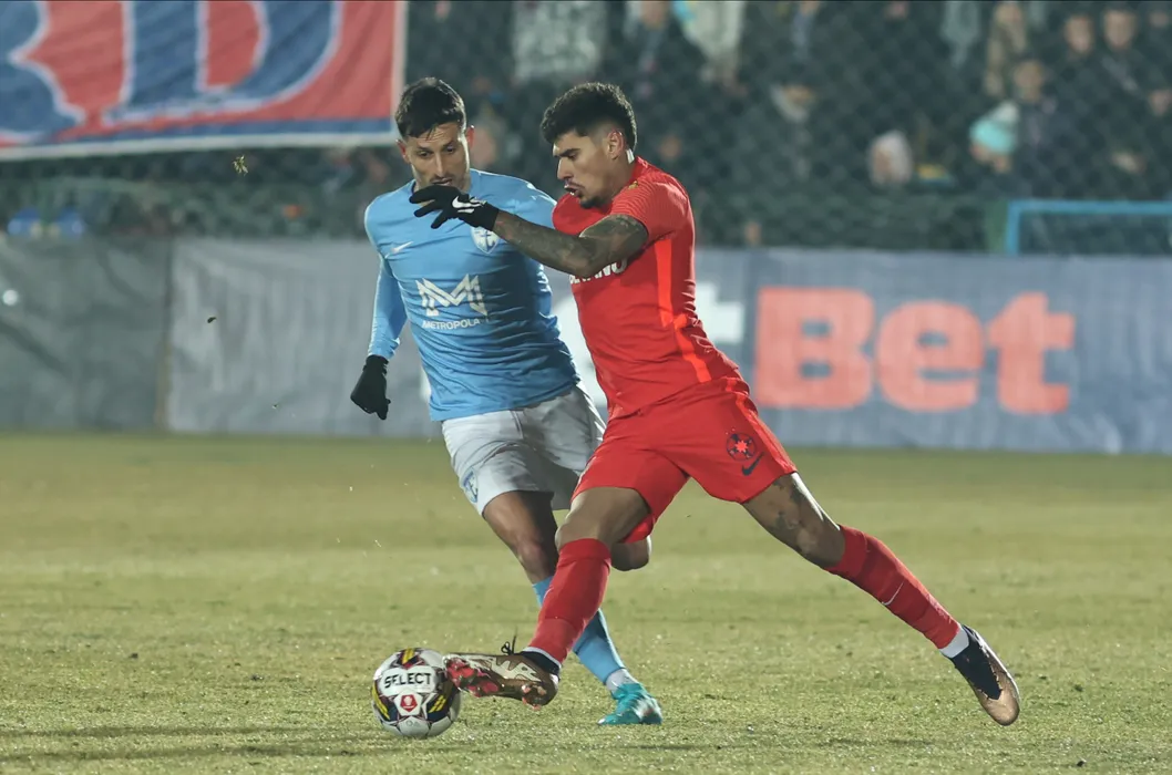 Florinel Coman si Ricardo Miranda la meciul de fotbal dintre FC Voluntari si FCSB, contand pentru Superliga Superbet, desfasurat pe Stadionul Anghel Iordanescu din Voluntari, duminica 12 februarie 2023. © FOTO:Gheorghe Fluster/SPORT PICTURES