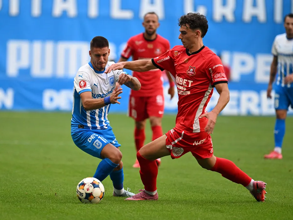Mihnea Gabriel Radulescu si Kevin Andrei Ciubotaru in meciul dintre Universitatea Craiova si FC Hermannstadt, contand pentru Superliga Superbet, desfasurat pe Stadionul Ion Oblemenco din Craiova, duminica 10 august 2025. © FOTO:Razvan Pasarica/SPORT PICTURES