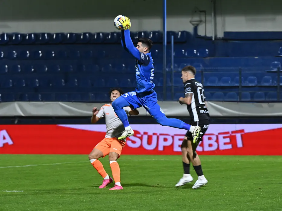 Catalin Vasile Cabuz retine un balon in meciul de fotbal dintre Metaloglobus Bucuresti si FC Hermannstadt, contand pentru Superliga Superbet, desfasurat pe Clinceni Arena din Clinceni, luni 24 noiembrie 2025. © FOTO:Razvan Pasarica/SPORT PICTURES