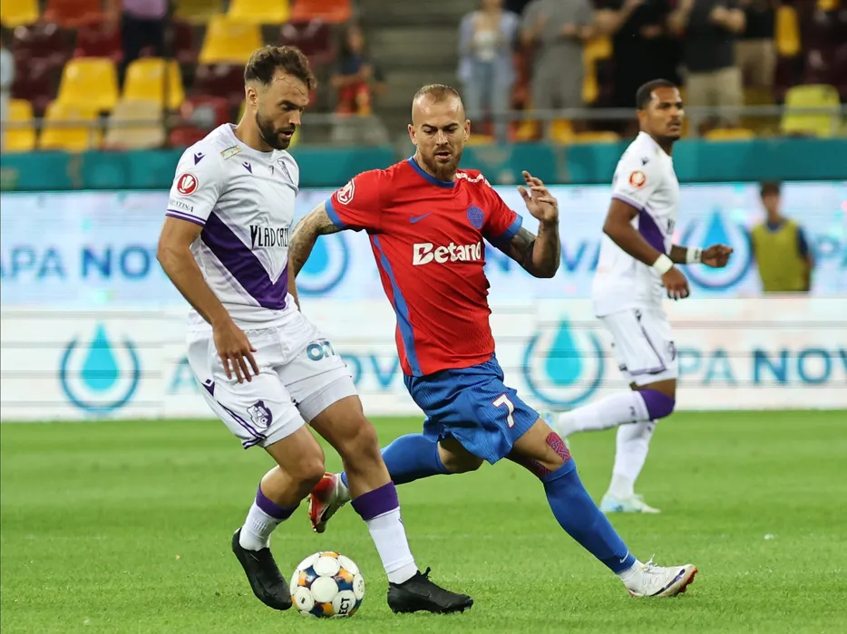 Roberto Manuel Sierra Gimenez si Denis Alibec in meciul dintre FCSB si FC Arges, contand pentru Superliga Superbet, desfasurat pe Arena Nationala din Bucuresti, duminica 24 august 2025. © FOTO:Gheorghe Fluster/SPORT PICTURES
