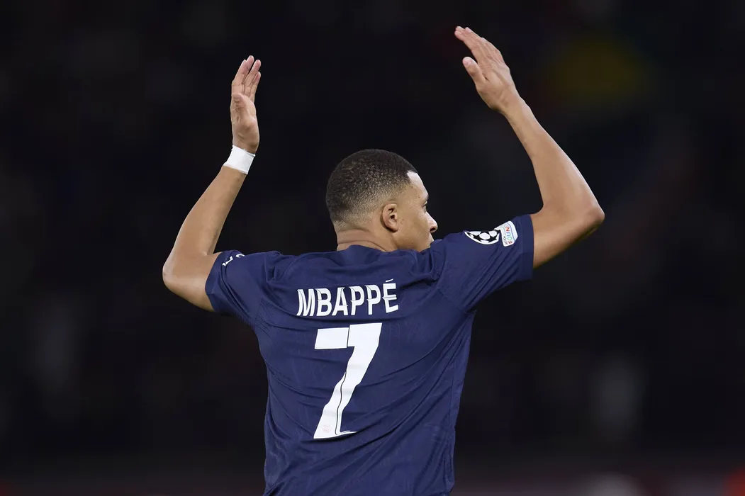 Paris Saint-Germain v Real Sociedad: Round of 16 Leg One - UEFA Champions League 2023/2024 Kylian Mbappe of Paris Saint-Germain celebrates after scoring the team s first goal during the UEFA Champions League match between Paris Saint-Germain and Real Sociedad at Parc des Princes on February 14, 2024, in Paris, France. Paris Parc des Princes Paris France RL_PSGvRSO_171 Copyright: xRicardoxLarreinax,Image: 847179711, License: Rights-managed, Restrictions: Credit images as "Profimedia/ IMAGO", Model Release: no