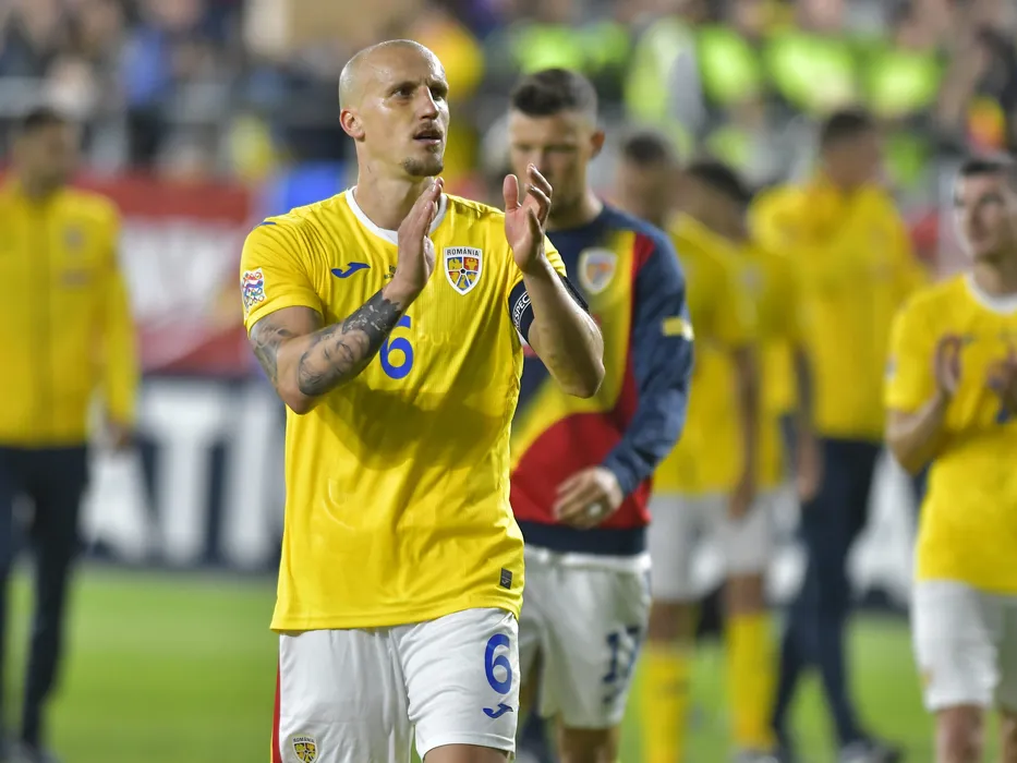 Vlad Chiriches saluta publicul dupa meciul de fotbal dintre Romania si Finlanda, contand pentru Liga Natiunilor, desfasurat pe Stadionul Rapid Giulesti din Bucuresti, sambata 11 iunie 2022. © FOTO:Razvan Pasarica/SPORT PICTURES