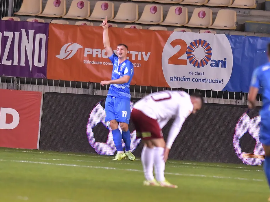 Iliuta Daniel Popa se bucura dupa un gol marcat in meciul de fotbal dintre Chindia Targoviste si Rapid Bucuresti, contand pentru Liga 1 Casa Pariurilor, desfasurat pe Stadionul Ilie Oana din Ploiesti, vineri 19 noiembrie 2021. © FOTO:Razvan Pasarica/SPORT PICTURES