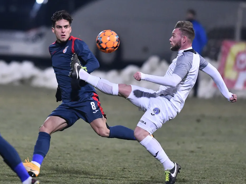Marco Alexandru Dulca si Mathieu Thibault Gaetan Moulin in meciul de fotbal dintre Chindia Targoviste si Academica Clinceni, contand pentru Liga 1 Casa Pariurilor, desfasurat pe Stadionul central al Centrului National de Fotbal de la Buftea, vineri 22 ianuarie 2021. © FOTO:Razvan Pasarica/SPORT PICTURES