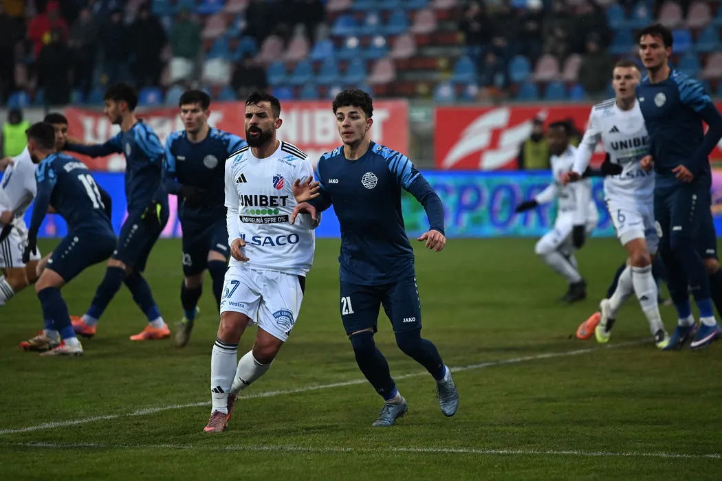 Enriko Papa si David Mario Irimia in meciul de fotbal dintre FC Botosani si FC Metaloglobus Bucuresti, contand pentru Superliga Superbet, desfasurat pe Stadionul Municipal din Botosani, duminica 8 februarie 2026. © FOTO:Tudy/SPORT PICTURES