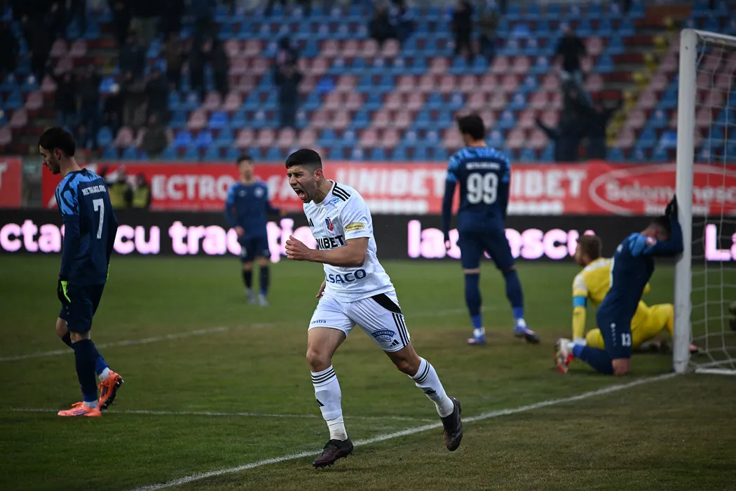 Enzo Adrian Lopez se bucura dupa autogolul lui Andrei Sava in meciul de fotbal dintre FC Botosani si FC Metaloglobus Bucuresti, contand pentru Superliga Superbet, desfasurat pe Stadionul Municipal din Botosani, duminica 8 februarie 2026. © FOTO:Tudy/SPORT PICTURES