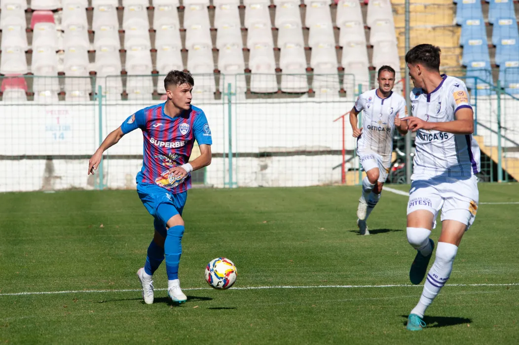 Matei-Adrian Tănasă în meciul de fotbal dintre GLORIA BUZĂU și CAMPIONII FC ARGEȘ, contând pentru LIGA 2 CASA PARIURILOR, desfășurat pe Stadionul "Gloria" din Buzîu, duminică 29 octombrie 2023. © FOTO: Andrei PITIGOI/SPORT PICTURES