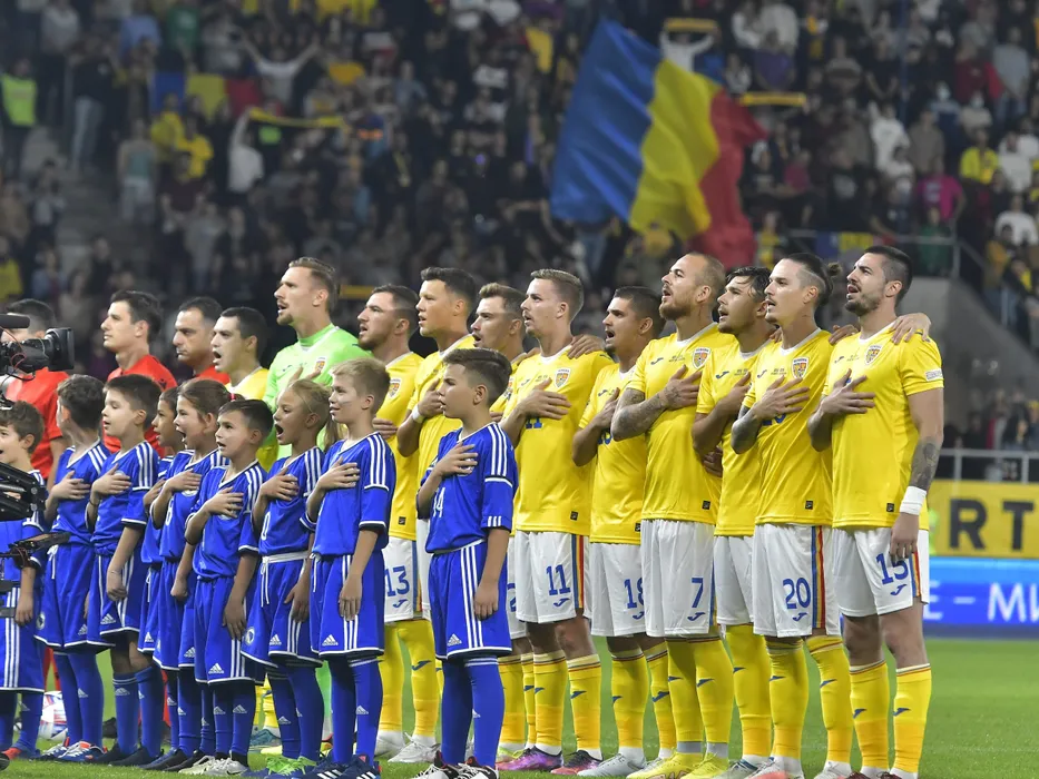 Fotbalistii romani la startul meciului de fotbal dintre Romania si Bosnia Hertegovina, contand pentru Liga Natiunilor, desfasurat pe Stadionul Rapid Giulesti din Bucuresti, luni 26 septembrie 2022. © FOTO:Razvan Pasarica/SPORT PICTURES