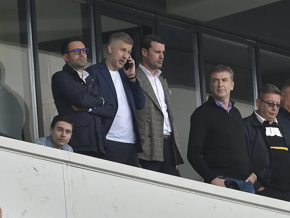 Edward Iordanescu si Marian Copilu asista din tribuna la meciul de fotbal dintre Petrolul Ploiesti si FC Hermannstadt, contand pentru Play-out-ul Superligii Superbet, desfasurat pe Stadionul Ilie Oana din Ploiesti,sambata 13 mai 2023. © FOTO:Razvan Pasarica/SPORT PICTURES