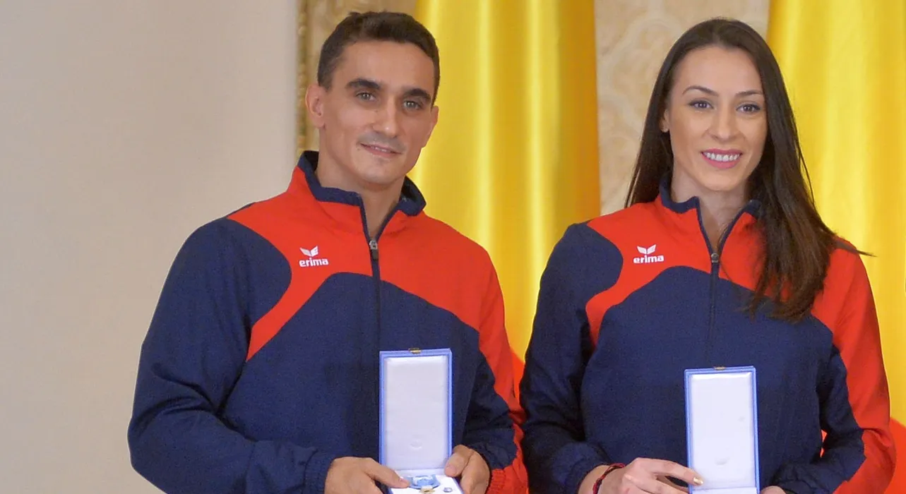 Gimnastii Catalina Ponor, Marian Dragulescu si Larisa Iordache au primit, marti 26 septembrie 2017, din partea presedintelui Klaus iohannis, Ordinul National "Serviciul Credincios" in grad de ofiter (Catlina Ponor si Marian Dragulescu) si Ordinul "Meritul Sportiv" (Larisa Iordache) ca semn de inalta apreciere pentru talentul, pasiunea si devotamentul profesional puse in slujba sportului romanesc, ALWEXANDRU DOBRE / MEDIAFAX FOTO