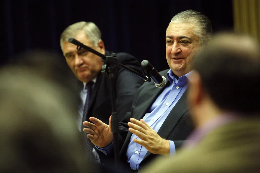 Presedintele clubului Poli Timisoara, Marian Iancu, prezinta bilantul financiar al ultimilor trei ani, in fata consilierilor locali si judeteni, luni, 13 decembrie 2010, la Timisoara. ALIN MATEI / MEDIAFAX FOTO